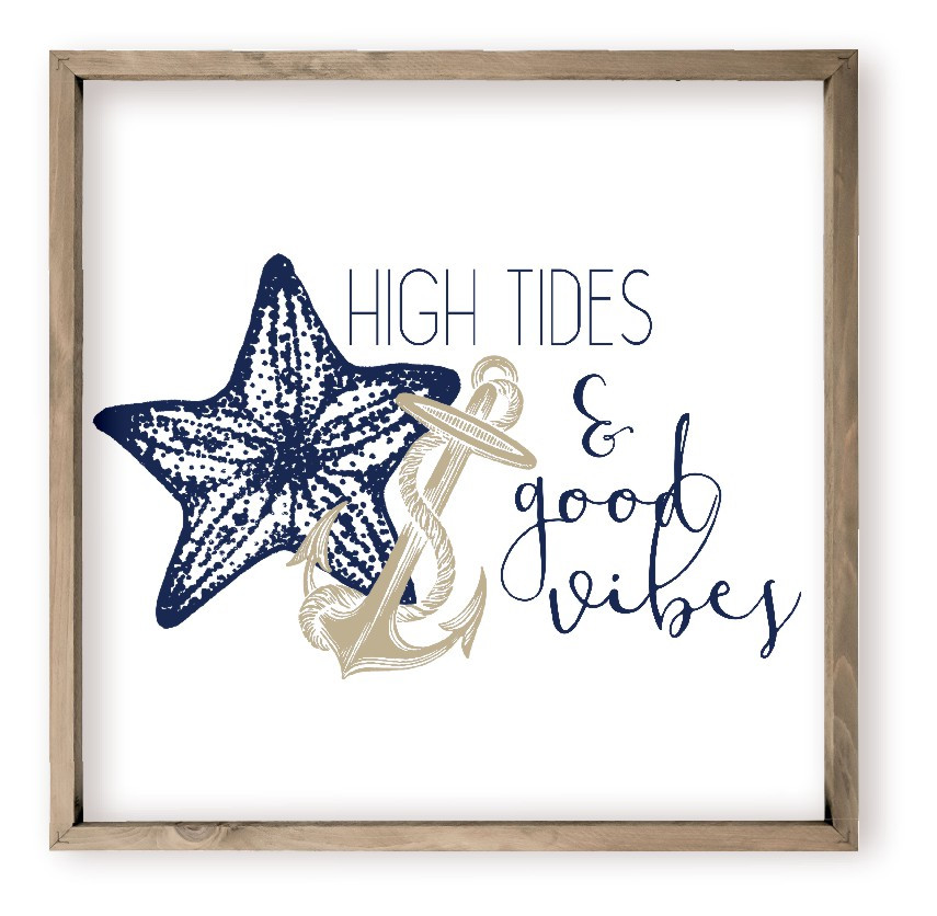- High Tides And Good Vibes Farmhouse Style Wood Wall Decor Sign Beach Theme
