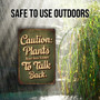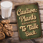 Vintage-Style "Caution: Plants Have Been Known To Talk Back" Metal Sign - Rustic Green Decor With Ornate Cursive Font 8x12
