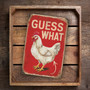 Vintage-Style "Guess What Chicken Butt" Sign - Humorous Red Sign With White Chicken Illustration 8x12
