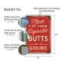Vintage-Style "Please Do Not Throw Cigarette Butts On The Ground" Sign - Elegant Cursive Font On Red Background 8x12