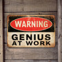 Vintage-Style "Warning: Genius at Work" Sign - Rustic And Distressed Design 8x12