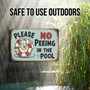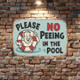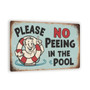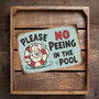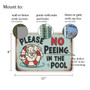 Vintage-Style "Please No Peeing In The Pool" Sign - Rustic Blue Background With Cheerful Cartoon 8x12