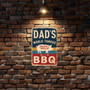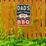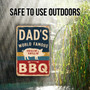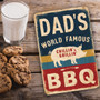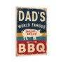 Vintage-Style "Dad's World Famous BBQ" Sign - Rustic Blue, Yellow, And Red Stripes With Pig Illustration 8x12