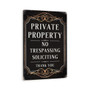 Vintage-Style "Private Property - No Trespassing Soliciting" Sign - Black With Ornate Golden Borders 8x12