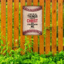 Vintage-Style "I Can Do All Things Through Christ" Metal Sign - Faded Baseball Stitches Background With Philippians 4:13 Verse 8x12